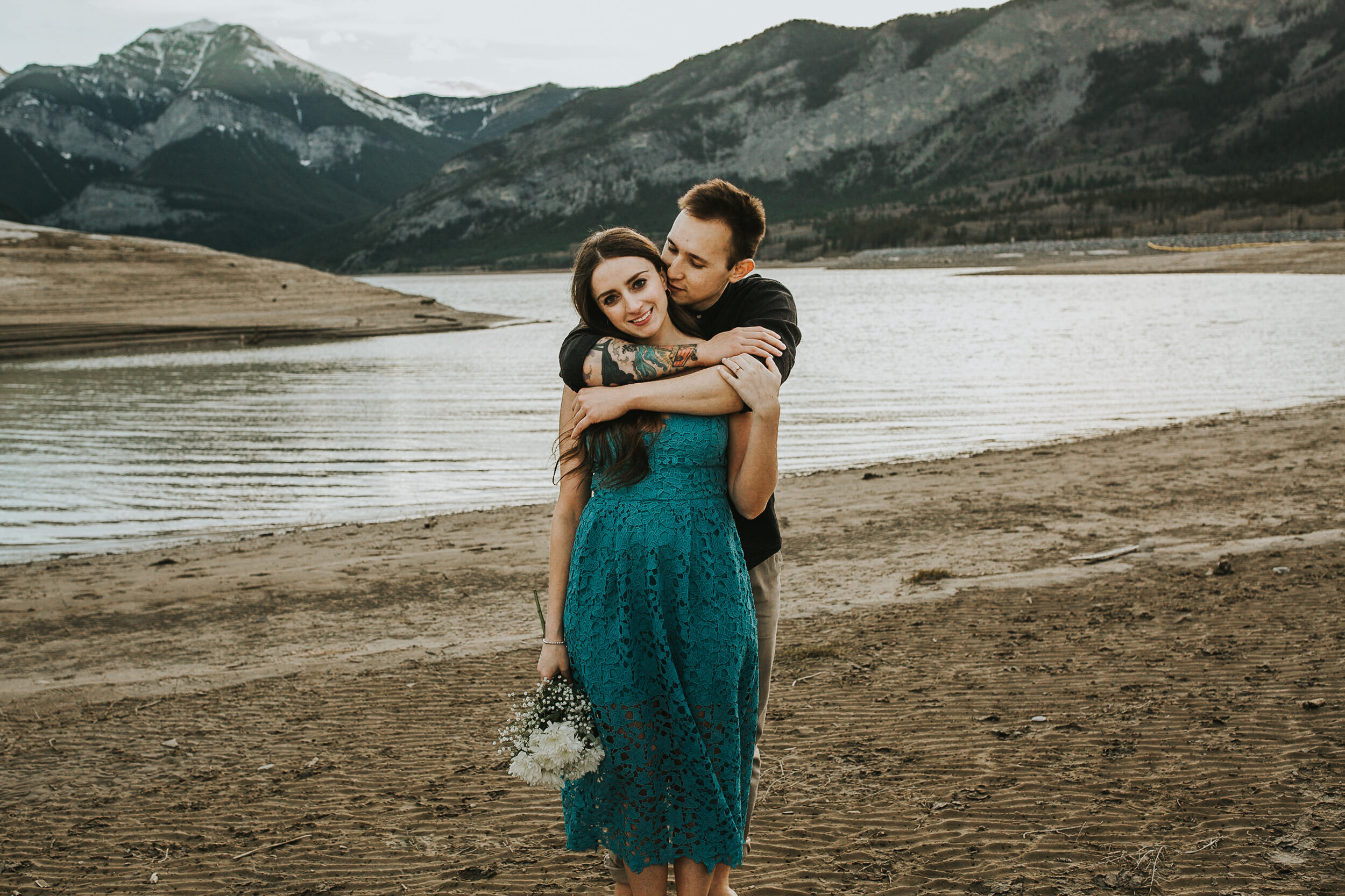 Sunset picnic engagement session at Barrier Lake in Kananaskis, Alberta